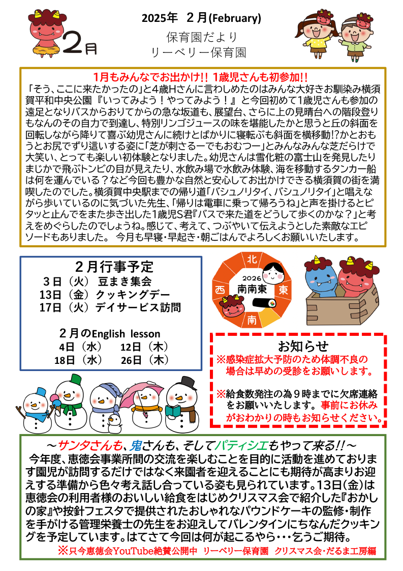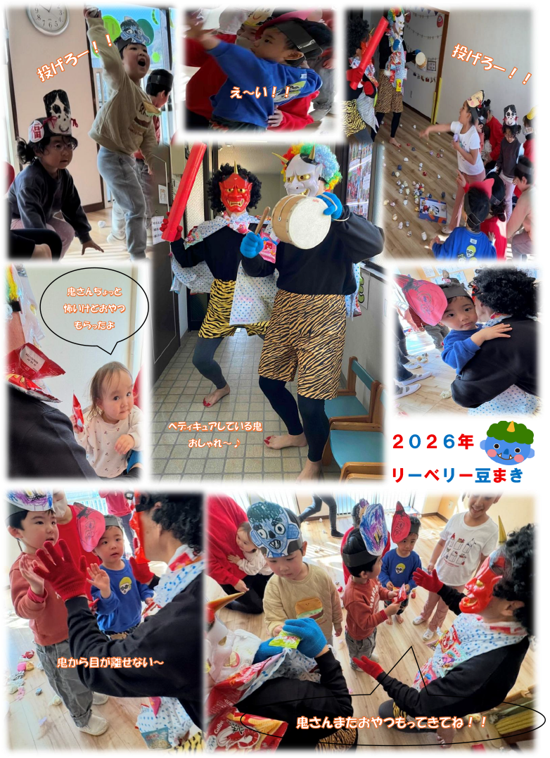 リーベリーに鬼が2人もやってきた!皆で力を合わせ鬼を追い払い福を呼び込んだ子どもたちの様子をご覧ください。